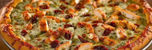 Join us for a delightful treat as we serve a scrumptious Chicken Pesto Pizza featuring pesto cream sauce, cherry tomatoes, roasted red pepper, mushrooms, and a garlic butter crust, all for just $20. Additionally, enjoy our refreshing draft beer for only $5!
